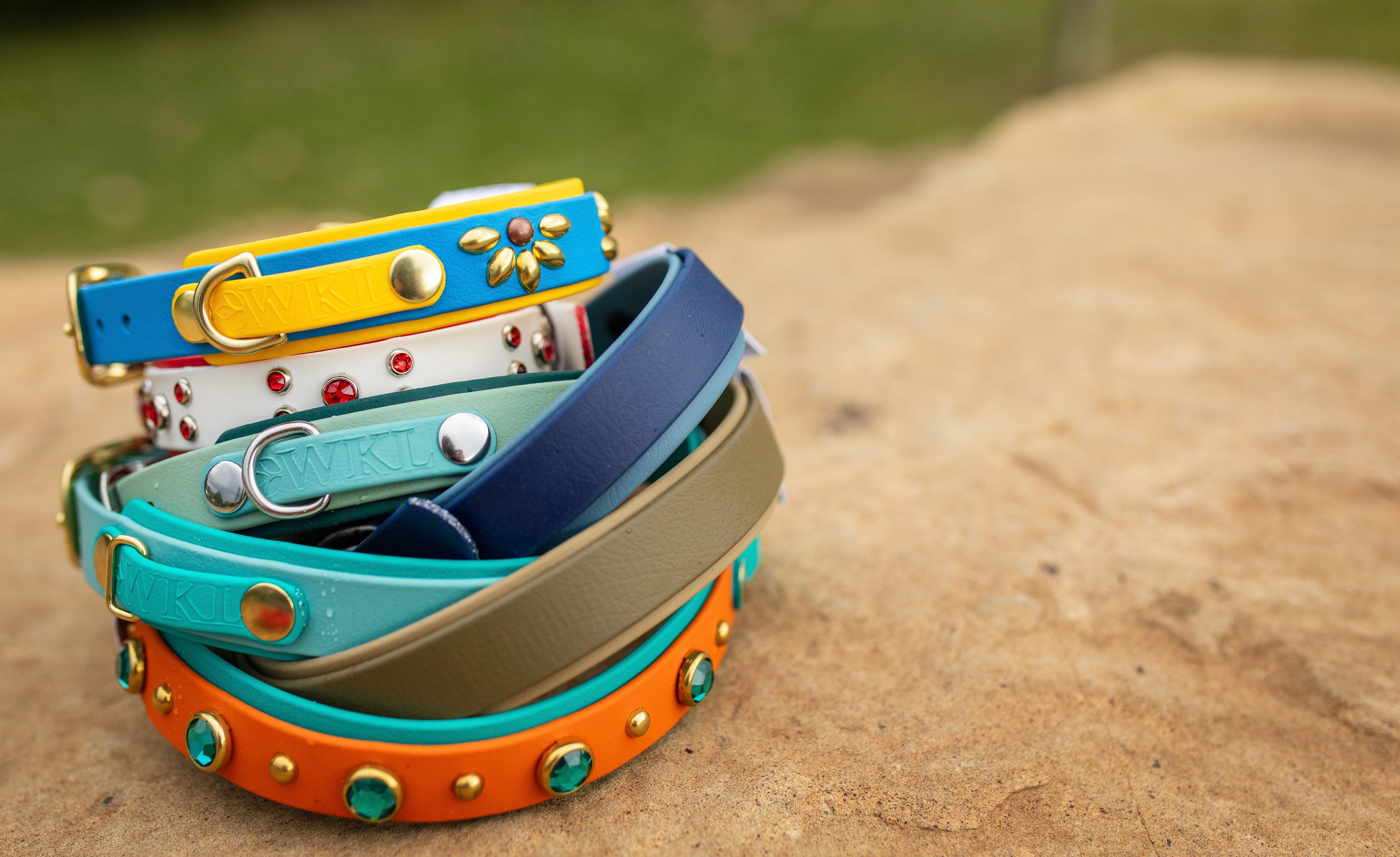 Plain collars and collars with metal studs only, suitable for regular wear...
